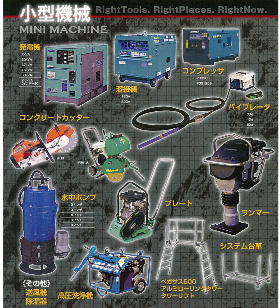 建築現場では多くの機材が必要となる場合があります。エムズレンタルでは幅広く機材をそろえておりますのでにお客様のニーズに応えることが出来ます。